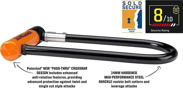 SPECIFICATIONS: U-Lock interior locking dimensions are 4 in. x 9 in, 14mm steel shackle with a weight of 3.50 lbs. Includes three stainless steel keys with an ergonomic design