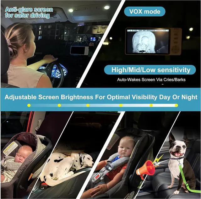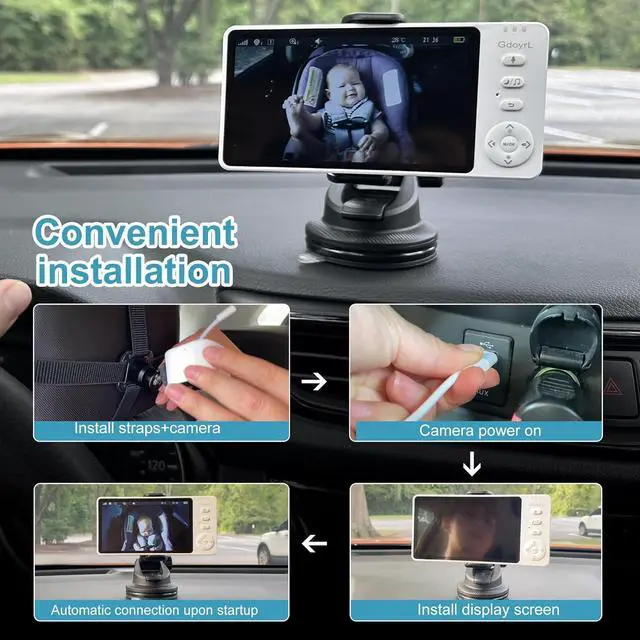 Easy to Install & Use --The camera for baby in car needs only one USB cable to plug and play, easy to install and start within 3 minutes. You are also able to dim the screen or adjust the brightness for night driving or when the screen is too bright. The monitor is integrated with multiple baby care functions, including temperature alarm, voice reactivation, feeding reminder, soothing music, two-way audio etc., making it the perfect idea for gift registry for baby shower or for new parents.