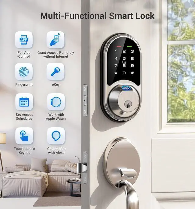 Enhanced Security: The ligent lock features auto-lock, one-touch locking, privacy mode, passage mode, and low battery alert, made with an anti-peeping and anti-hacking touchscreen keypad, keeping your home secure