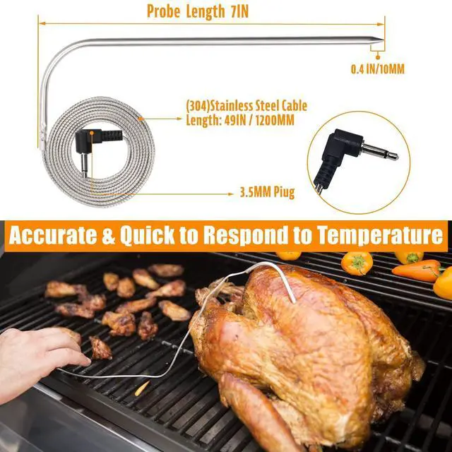 Our grill food probe replacement are made of food-grade stainless steel to monitor meat temperature.