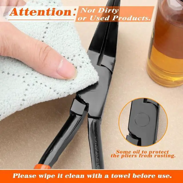 ANTI-RUST OIL The Antirust oil may appear on the pliers, it can protect the pliers from rusting. It's not a dirty or used product, you can clean it with a towel and it will not affect its function.