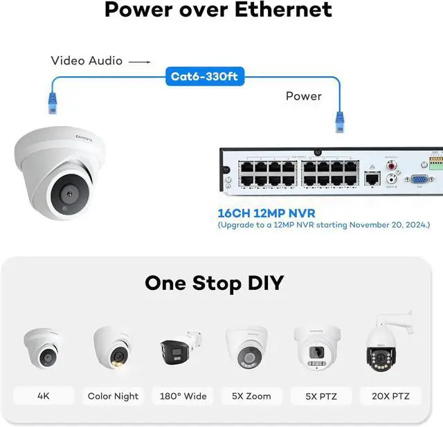 Capture and Record Audio-- Cameras capture sound and NVR record it. Power over Ethernet, Plug and Play. PoE NVR provides power to cameras via ethernet cables.