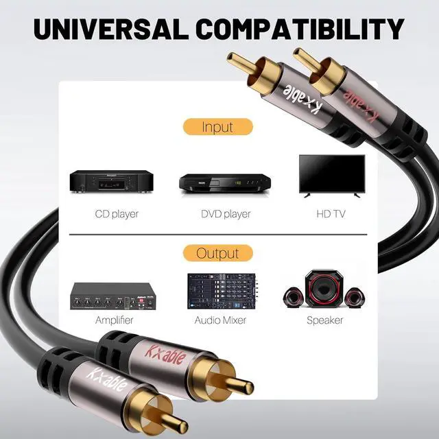 Wide Compatibility: Our RCA cables are perfect for premium left/right audio signal transfer, Great for your Home Theater system, HDTV, Hi-Fi Systems, Game Console, Soundbox, Bluray player, Audio receiver, Amplifiers, Xbox 360, Car Audio, Speakers or any Device with L / R Jack.