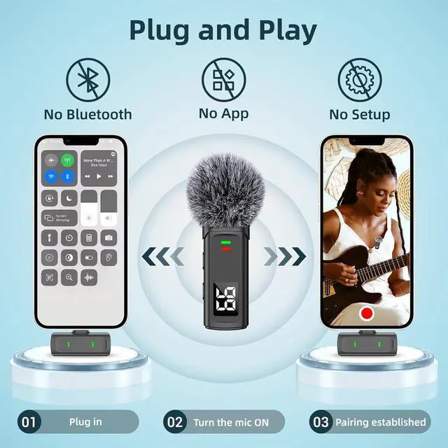 Great for Content Creators: This set of microphones for iPhone includes 1 receiver and 2 transmitters, which can be used simultaneously. Each wireless iPhone microphone is compact and discreet. With the storage bag attached, users can freely take it out, wearing just like nothing clipped. Thus an ideal choice for bloggers, online influencers, and content creators, perfect for vlogging, street interviewing, and more