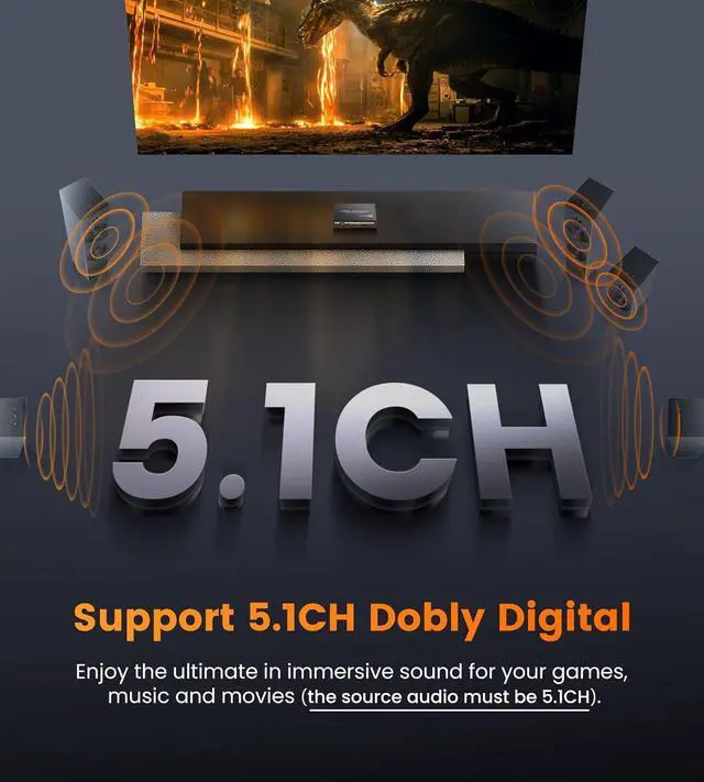 Play: Works seamlessly with devices like PS5, PS4, DVD, Xbox Series X, TV Box, Blu-ray Player, Fire Stick, Laptop, and HDTV.