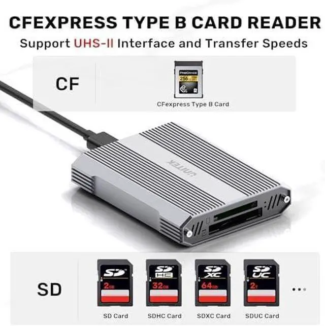 Note: Not compatible with CFexpress Type A/C and XQD cards.