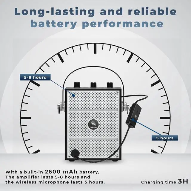 Widely Used: This portable PA system with wireless microphone is perfect for teachers, speakers, tour guides, yoga practice, lectures, karaoke, classrooms, weddings, conferences, and all kinds of indoor and outdoor events.