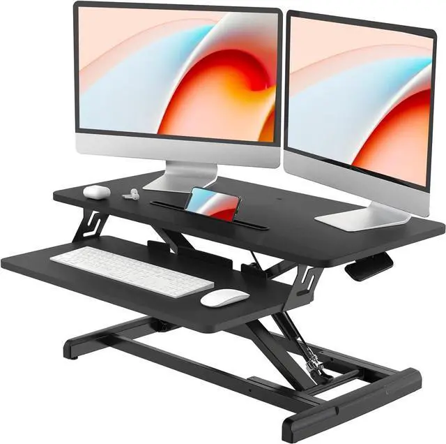Sturdy & Stable Adjustable Desk: Crafted from durable particle board and patented X-shaped frame, ensuring rising desk converter has the capacity to hold up to 28.6 lbs on the top tier and up to 4.4 lbs on the lower tier