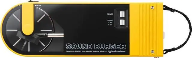 Due to the overwhelming response of the limited edition retro red Sound Burger, launched in 2022 in celebration of Audio-Technicas 60th anniversary (all quantities sold out globally in days), Audio-Technica is thrilled to announce that this fan favorite is returning to the companys regular lineup. Designed with portability in mind and available in three unique colors, the Sound Burger offers a retro aesthetic mixed with modern updates. Ideal for parties, compact living spaces, or picnics, this affordable entry-level turntable offers Bluetooth connectivity and USB charging and up to 12 hours of spinning. The Sound Burger offers high-quality sound reproduction with a belt-drive system that plays 33-1/3 and 45 RPM records. To achieve both portability and stability, the tonearm employs a dynamic balance system in which stylus pressure is applied via a spring. In addition, a high-precision DC motor maintains stable rotation. This unique turntable features a die-cast aluminum alloy platter with damping design and a replaceable ATN3600L stylus (sold separately). The Sound Burger also comes with an audio cable for those who prefer an analog, wired listening experience.
