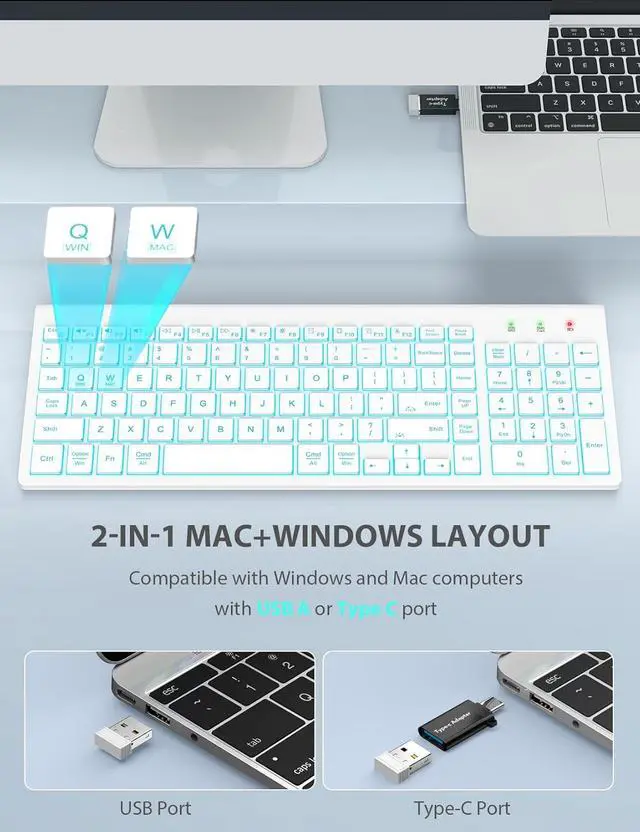 Smart Energy Saving]: The SABLUTE cordless combo comes equipped with a rechargeable battery, and easy recharging for the wireless keyboard and mouse using the provided Type-C cable. Moreover, an auto-sleep function conserves battery power when the keyboard mouse combo is idle, offering an impressive standby time of 365 days for the keyboard and 270 days for the mouse.
