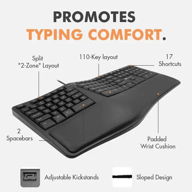 For PC and Chrome: Simply plug and play and use it right away with your desktop or laptop. No need to install any drive. This wired ergo keyboard is ready for any long-hour task.