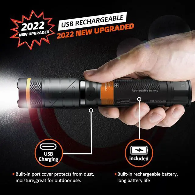 What you will get1*Rechargeable LED flashligh (Batteries Included), 1* Charging cable, 2* O-ring, 1* user manual, 60-day money back guarantee and 2-year warranty.