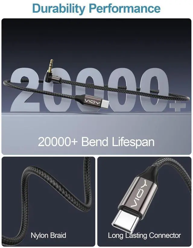 Enhanced Durability: This type c aux cord is made of corrosion-resistant and oxidation-resistant aluminum shell and 24K gold-plated plug, which is not only heat dissipating but also stylish in appearance. What' s more, combined with a nylon braided jacket and a reinforced anti-bend tail design, the usb c to 3.5 mm audio aux jack cable can withstand more than 20, 000 times of repeated plugging, unplugging and bending tests, increasing durability and anti-tangling, greatly extending its service life