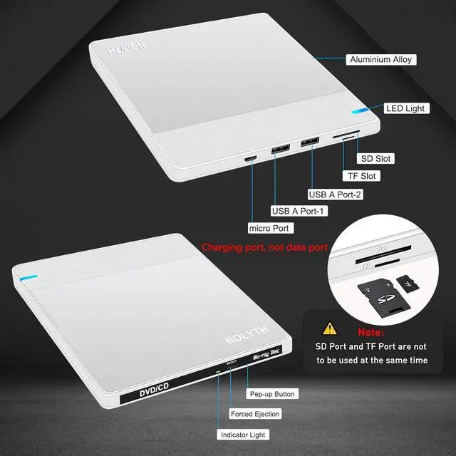 Value External Blu Ray Burner: This blu ray burner is not just for reading and burning CD/DVD/BDs. It also features 2 USB 3.0 ports, 1 SD and 1 TF card slot where you can transfer files between your camera and computer. The USB port effectively solves the problem of insufficient USB ports. Note that the SD and TF card slots cannot be used at the same time