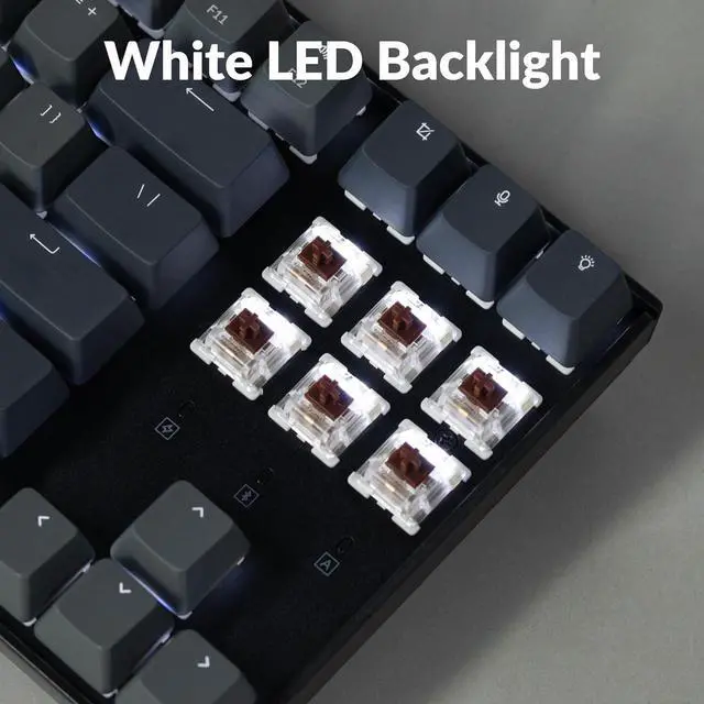 With the Gateron Brown switch providing unrivaled tactile responsiveness on the Brown switch with a durable 50 million keystroke lifespan. N-key rollover (NKRO) on wired mode or 6KRO on wireless mode.