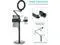 Ring Light: The 8" ring light uses USB Power Supply. Brightness and color temperature adjustable.