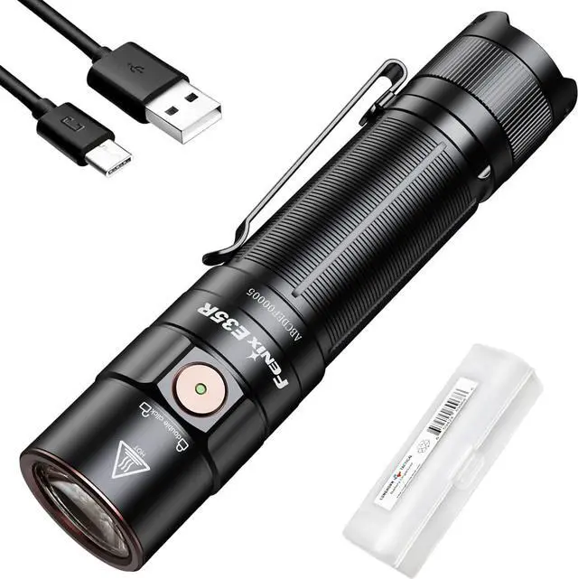 Content - Fenix E35R flashlight, USB-C charging cable, Lanyard and a LumenTac organizer