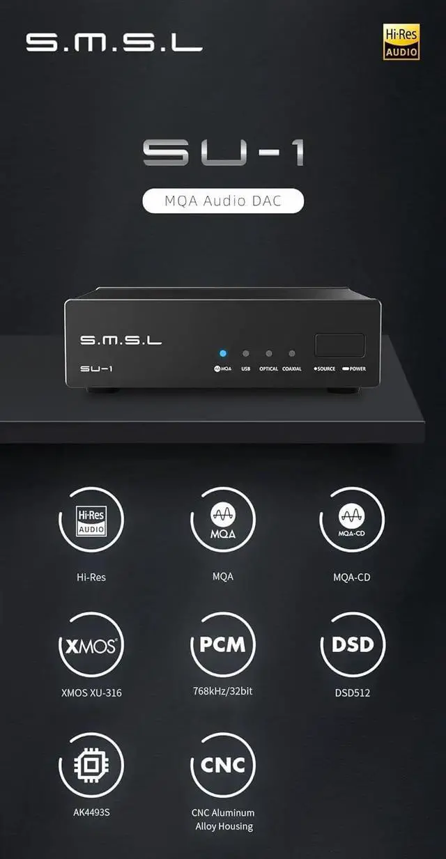 Support MQA CD:CD Player + MQA- Enabled DAC,Your CD player's digital output (optical or coaxial) can be fed to an MQA de coder. The MQA decoder can restore the original high-resolution signal heard in the studio and confirm it, using the authentication signature.SMSL SU-1 support MQA CD.