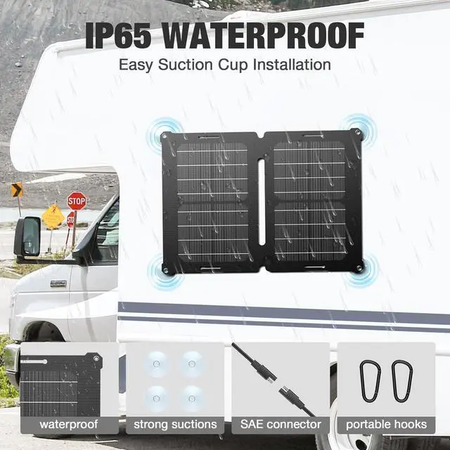 EASY TO SETUP: Equipped with SAE cable, just plug the cigarette lighter into the port or connect the battery terminal posts with the alligator clip, and the connection can be completed within 3 minutes! Suction cups allow the solar trickle charger mounts easily to the windshield or dash. A variety of scenarios for car, boat, RV, trailer, marine, camper, lawnmower, motorcycle, jet ski, water pump, tractors, etc.
