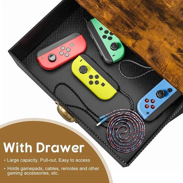 [Sturdy & Durable] The frame of the entertainment media center with storage is made from steel and High-quality wood boards, With superb load-bearing capacity and adjustable feet underneath each shelf for added stability