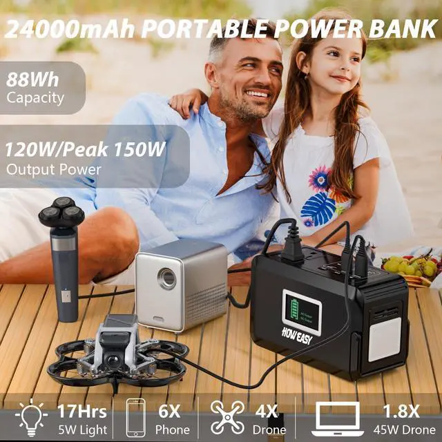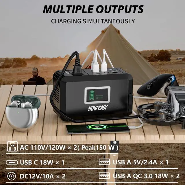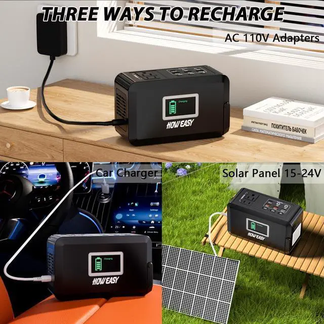 Compact and lightweight designThis portable power station is slim in size ( 6.6 * 4 * 3 inches) and light in weight ( 2.3 pounds), making it very convenient in a variety of situations. This portable charger is an ideal necessity for outdoor camping, road trips, and home power outages. Whether you are facing an emergency at home or camping outdoors, this power bank can help.