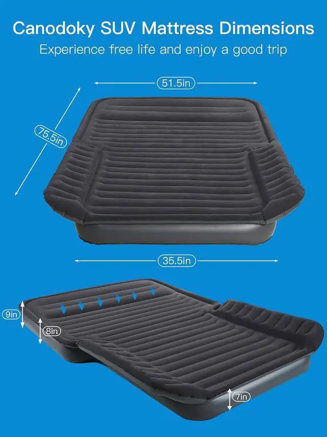 Elevated Head Design & Air Mattress Wings: The built-in pillow provides extra comfort with a 9-inch height at the top, gradually decreasing to 7 inches for the rest of the mattress. The unique "SUV air mattress wings" at the sides fit perfectly around the wheel arches, offering full-body protection and comfort