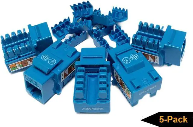 Features: * 110 type IDC punch down connectors * Easy to read "CAT. 5e" label on keystone face * Can be used with keystone wall plates, patch panels, or surface mount boxes * Standard keystone face size ( 14.5 x 16.0 mm) * Color coded wiring diagram next to wire clips * 568A and B compliant * UL listed
