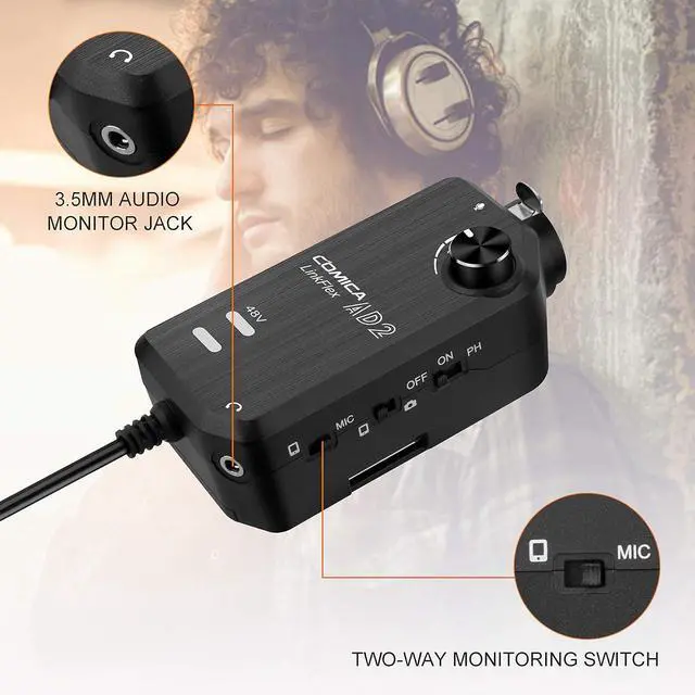 Gain-Control AdjustableThe gain control thumbwheel is easy to set precise levels, if you want the better video effects, you can dial the wheel of dslr preamp to an appropriate position while recording. You also can monitored the processed sound through a 3.5 mm headphone.