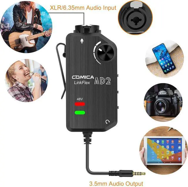 48V Phantom Power OutputWith the optional 48v phantom power (provided by 9V battery), LINKFLEX. AD2 microphone preamplifier supports any XLR condenser microphone. It's the perfect preamp for any recording situation.