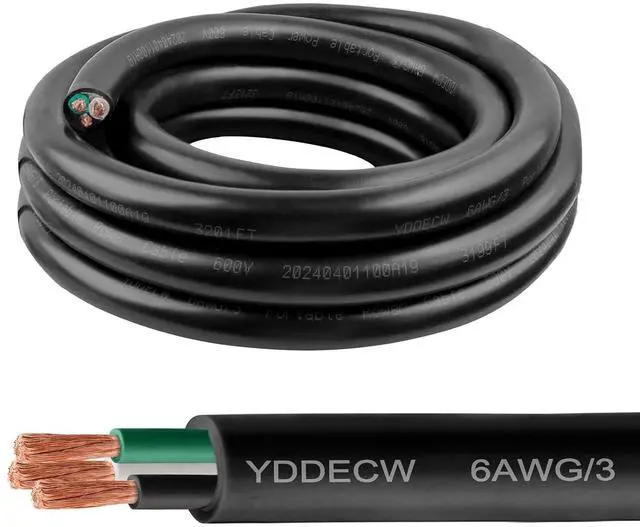 You Will Receive: a 19.6 mm diameter SOOW cable cord wire, 6AWG - 3 Conductor, 10 ft in length, made from stranded pure copper conductor material.