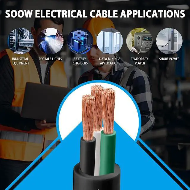 Conductor) typically include: distributing power in industrial settings, providing power for portable power and lighting at construction sites, events, and for emergency services, powering outdoor equipment like pumps, generators, and lighting systems, supplying temporary power needs for events and shows, connecting heavy-duty electrical equipment such as motors and transformers, and serving for marine applications by linking electrical systems on ships and boats.