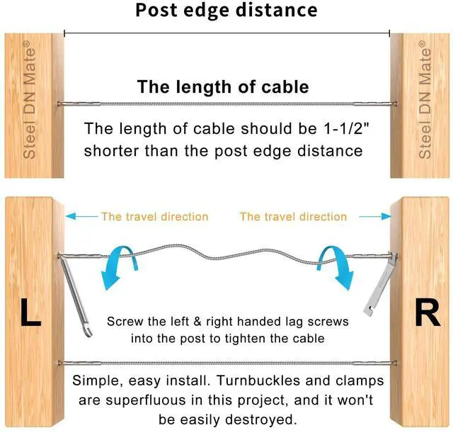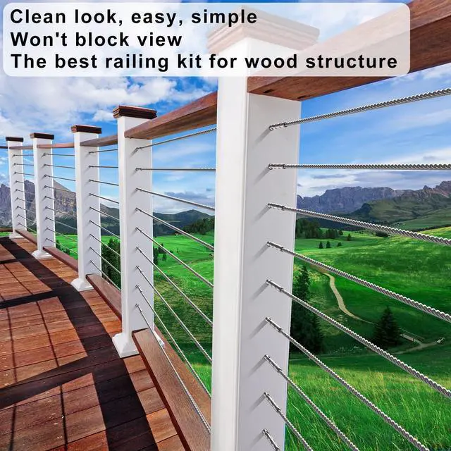 By the design of Right&left handed thread, of course it can be used to adjust the tension of attached cable, so the turnbuckles are not needed in the railing system. And this cable railing wont be easily unfixed or destroyeded. The lag screws could be drilled into wood to adjust the tightness without extra turnbuckle or tensioner. Deck and Stair Cable railing system is not only simple but also won't block your view.