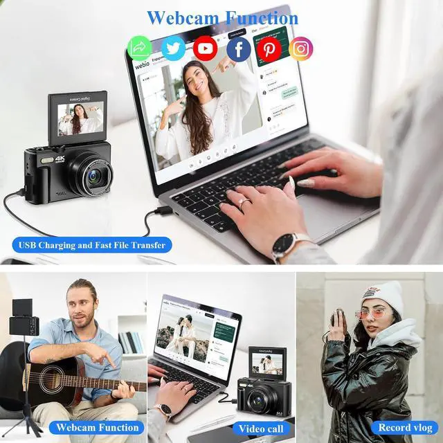 Multifunctional Point and Shoot Digital CamerasThe 4k digital camera for photography is multifunctional in that it has four photo modesContinuous shooting/Timed shooting/Auto photo mode/Normal photo modeand four video modesTime lapse recording/Loop recording/Slow motion recording/Normal video mode, along with a variety of filters. One camera can fulfill all your photography needs