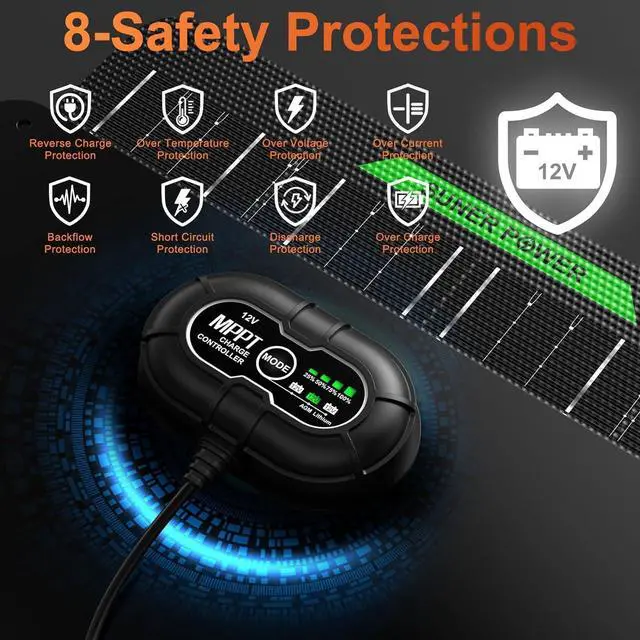 Three Battery Charging Modes Independently charge and control each 12 volt battery with selectable charging modes - including 12V, 12V AGM and 12V Lithium - for all types of lead-acid boat, car, dump trailer, automotive, marine, RV, powersport, camper and deep cycle batteries, including flooded, gel, AGM, SLA, VRLA and maintenance-free, plus lifepo4 lithium batteries.