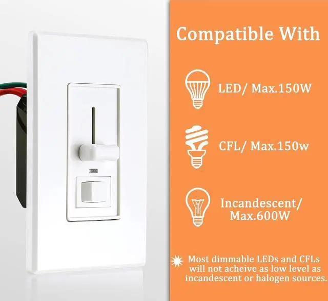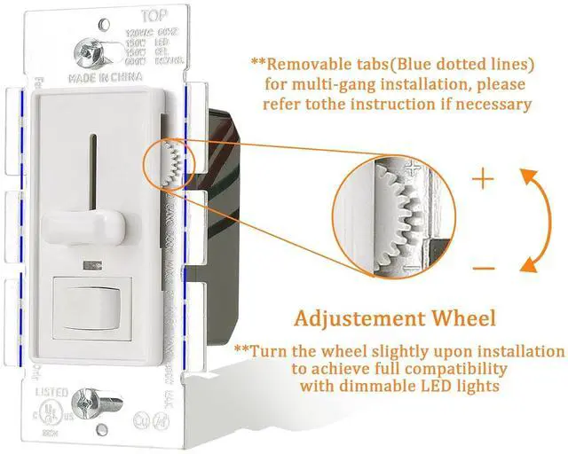 Works with LED,Halogen,Incandescent bulbs - Trim Dial below Cover Plate allows Sensitivity Adjustment upon installation to achieve compatibility with LED Lamps