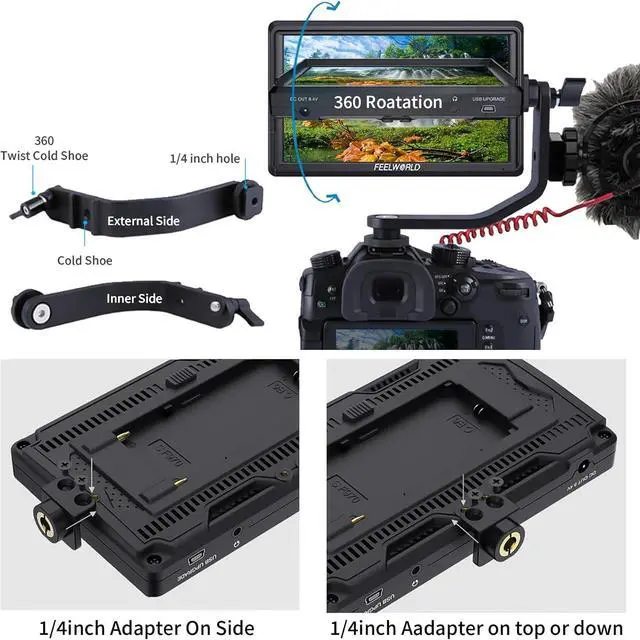 Package Contents1x FEELWORLD S55V3 camera HDMI monitor, 1xMicro HDMI Cable, 1xBattery, 1xBattery Charge Cable, 1x Carry Case 1x Sunshade, 1xTilt Arm, 1x Manual.