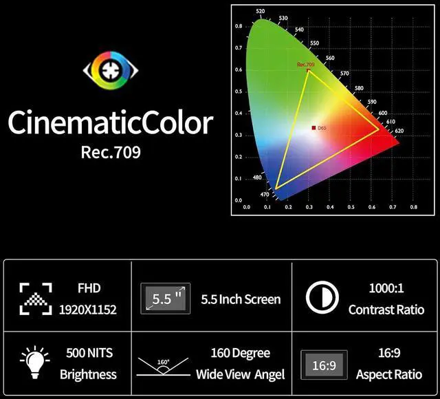 Advanced FeaturesWith Rec. 709 color, histogram, focus assist, false colors, zebra, zoom, image flip, and more. With the help of those features helps your shoot and field more accurate and contribute to the efficiency.