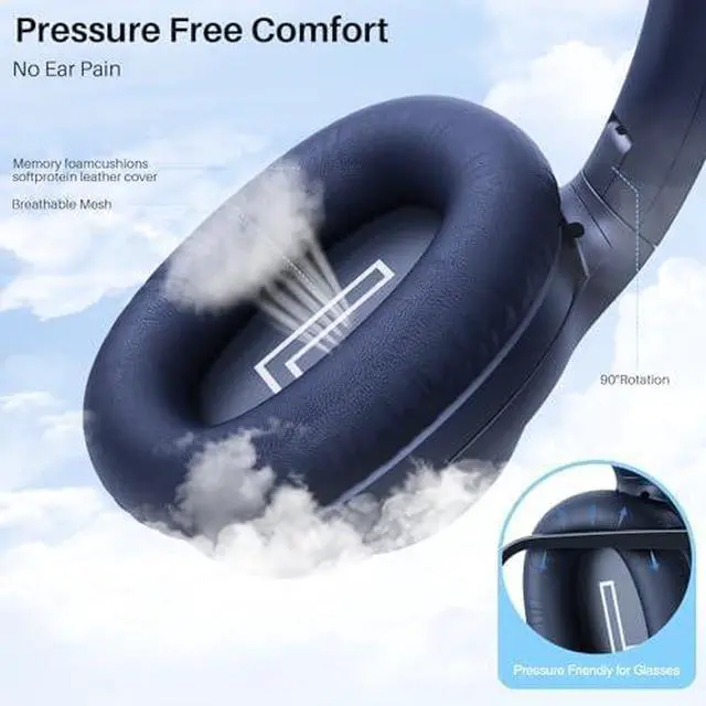 - -: The Lavales E500Pro Bluetooth headphones feature ultra-soft protein leather earcups with memory foam padding that fit snugly over your ears, providing a marshmallow-like softness that allows you to wear them comfortably all day long. Headband also covered by soft sponge, make sure it comfortablly fit your headshape.