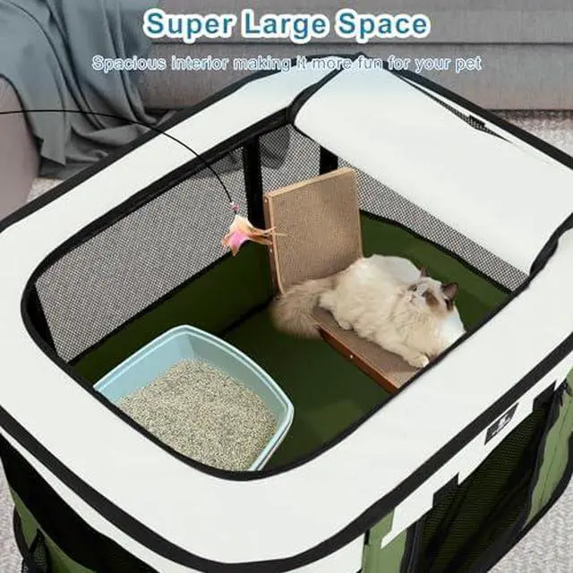 - Spacious & ComfortDog cage consists of 4 mesh side panels and a half mesh top, well ventilated; The playpen tent promotes comfort and security, providing dogs and cats a safe enclosed space for lounge and play. The pet playpen is also a ideal present as Christmas gifts for dog cat lovers
