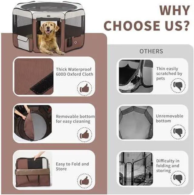 - MORE OCCASIONSLightweight but strong, makes this pet playpen ideal for traveling, camping, suitable for cats, rabbits, dogs under 16 inches tall (to shoulders).