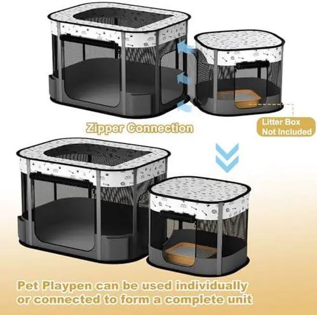 - DETACHABLE CONJOINED CAGE: Separate the cat litter area from the cage, keeping away the odor of the cat litter. These two cages can also be used independently, offering a larger indoor play area
