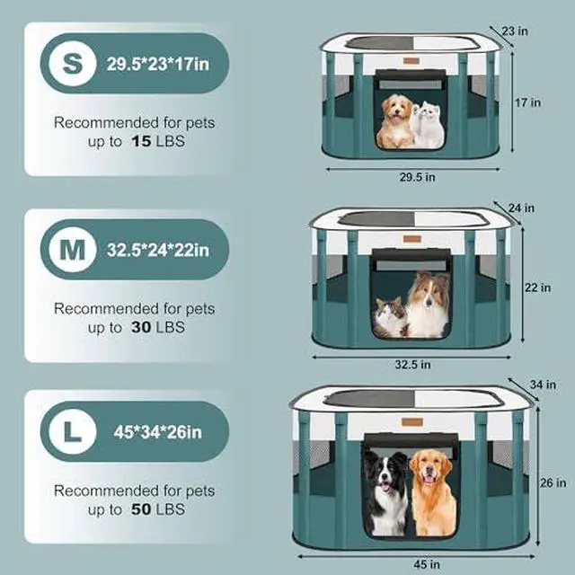 - 3 SIZES FOR MOST PETSSmall- 29.5 x23x17in; Medium- 32.5 x24x22in; Large-45x34x26in. Please allow 1-2in error. Suitable for cats, dogs, puppies, kittens, rabbits, chickens, ferrets, hamsters, guinea pigs and pregnant pets, etc. Please measure your pet's size and choose the right size before you b