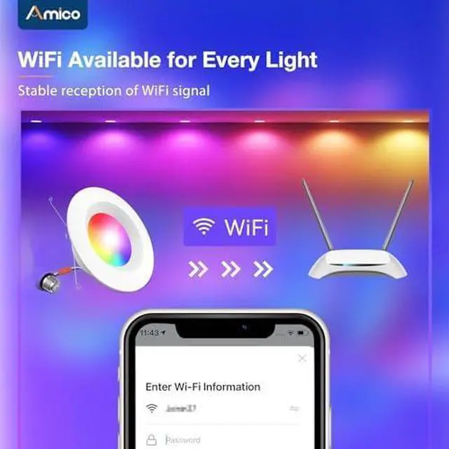 Seamless Voice Control: Take charge of your lighting effortlessly with voice commands by connecting the Amico Recessed Smart Downlight to popular smart home assistants.