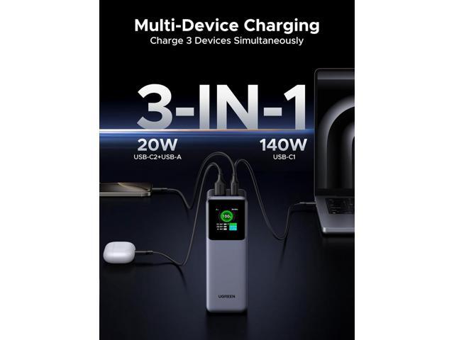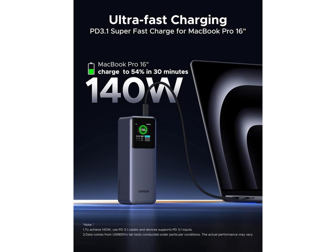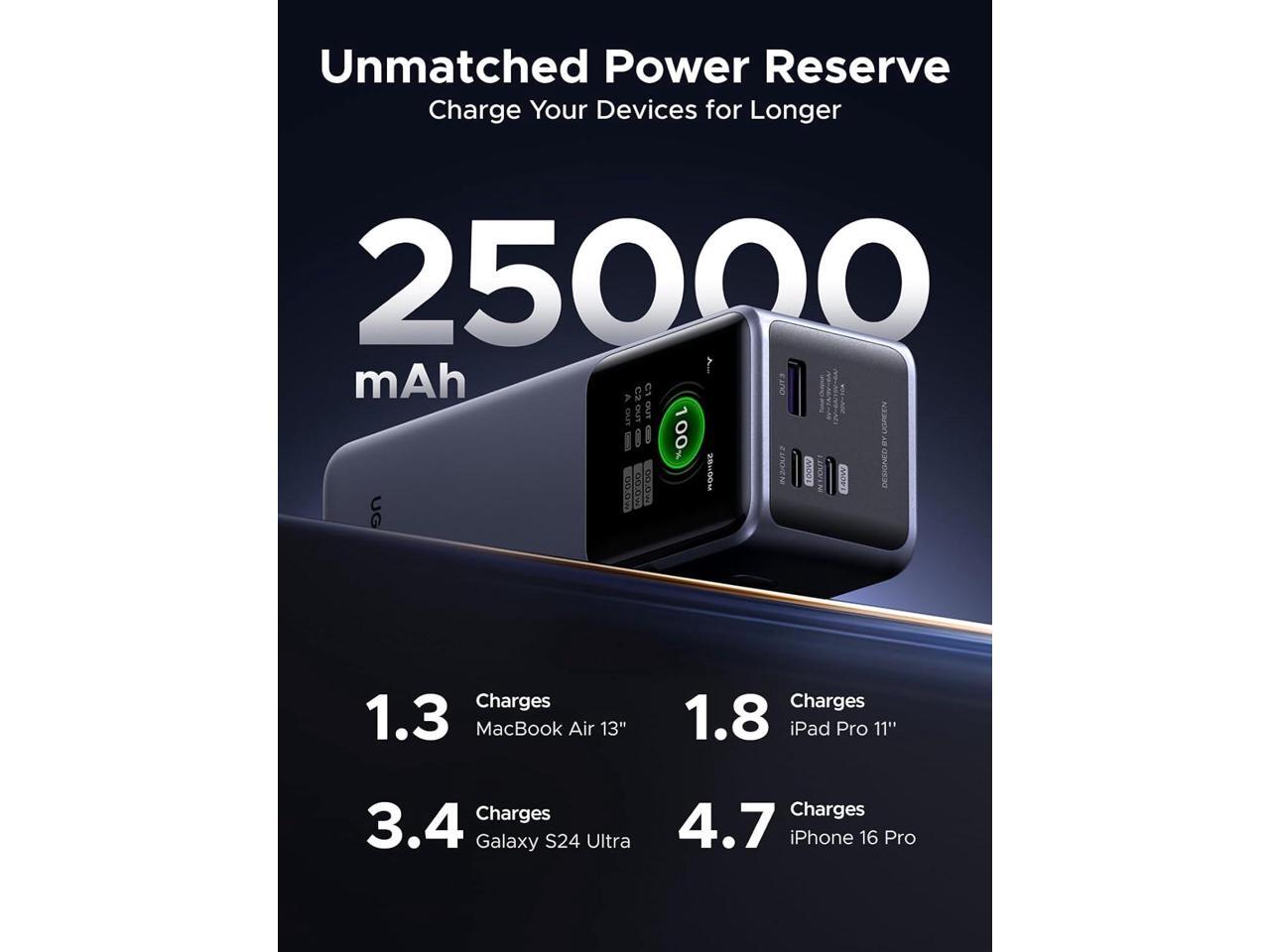 - 200W Fast Charging: The total output of portable charger reaches 200W, it can significantly improve efficiency, for professionals such as photographers, videographers and gaming enthusiasts, ensuring the continuity of work and entertainmentfalse25000 mAh Capacity: During long-distance travel or camping, this ugreen battery pack can be used as an emergency power supply to provide sufficient power for multiple devices, it is enough to charge an iPhone 15 5.2 timesfalse