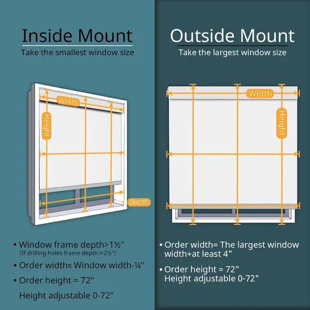 EASY INSTALL BLINDS: The remote blinds have a simple and practical no-drill mechanism (suitable for inside mount). Attach the adhesive extension block to the groove of the upper rail (it is forbidden to put more than one block), and then push it into the window frame. There is a battery compartment at the top to supply power for the shades. If the batteries are low, just take them out and replace. A stylish valance is included to block the light from the gap between fabric and the top rail