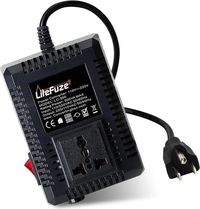 The LiteFuze LC series 500-watt travel voltage converter is a compact and lightweight power transformer made for travellers. With a weight of 2 lbs. and compact dimensions of 5 x 3.5 x 3 inches this voltage converter is easy to carry in your luggage. This voltage converter has a maximum capacity of 500 watts making it suitable for use with a wide range of products like hair straighteners, laptops, and chargers. Our power converter comes with step-up and down functionality meaning it can convert 110/120v to 220/240v and vice versa, our 110v to 220v converter also features a universal output socket that can accept plugs from most countries except South Africa. The 220v to 110v voltage converter comes with thermal fuse protection protecting the converter from overload and burnout. The LiteFuze LC 500 comes with a grounded cord and a high-resistance copper coil ensuring durability. The power converter comes with the Converting Box technology making it energy efficient, lightweight, and noiseless during operation. The converter comes with a 5-year warranty and is also CE-certified ensuring safety and quality.