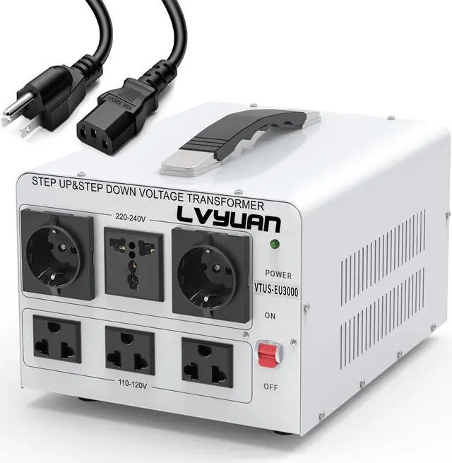 - What's included: LVYUAN 3000 Watts voltage converter, Hardwired Heavy Duty Insulated Power Cord with USA Grounded 3-Prong Plug, Manual, 3-Year Manufacturer's Limited Warranty.