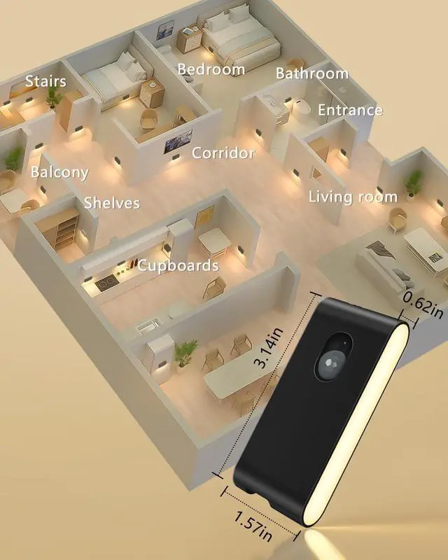 Eye-friendly Night LightOur stair lights indoor is soft and easy on the eyes, emitting a gentle, soothing glow. Its warm and diffused lighting creates a cozy atmosphere, while the non-harsh design makes it perfect for relaxation or nighttime use. Easy Installation and Portable DesignOur rechargeable night light equipped with a built-in magnet, allowing these stair lights indoor can easily attach to any magnetic surface without tools. An included magnetic adhesive allows flexible stick on anywhere you need, from staircases and cabinets to hallways, kitchens, drawers, bedrooms, and living rooms.