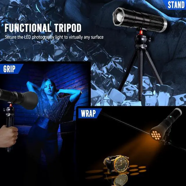 ¼" INTERFACE & FUNCTIONAL TRIPODThe built-in ¼" interface makes the studio light compatible with most tripods and camera cages. Comes with a tripod for supporting the light for photography when your hands are occupied. You could grip it, wrap it or stand it, wrappable legs allow you to secure the LED photography light to virtually any surface. The ballhead of the tripod has a 360° panning bed and 90° tilt and bubble level for optimal position control. Get any lighting position flexibly. LONG-LASTING LIGHT WITH COMPACT DESIGN The light for video recording adopts a pocket size of 5.5 " (14 cm) and light weight of 1 lb (460 g).