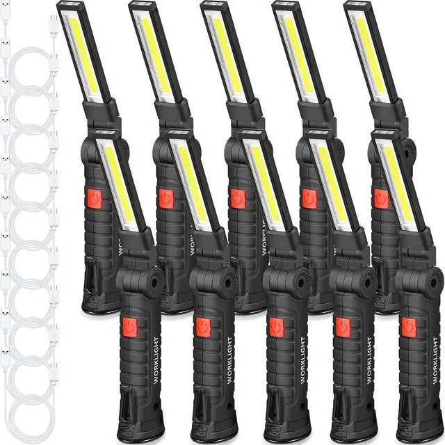 10 Pcs Fathers Day Tool Gifts Rechargeable LED Work Light with Magnetic Base and 360° Rotate Magnetic Flashlights for Mechanics Car Repair Home Garage Camping Gifts for Men Dad (Large)